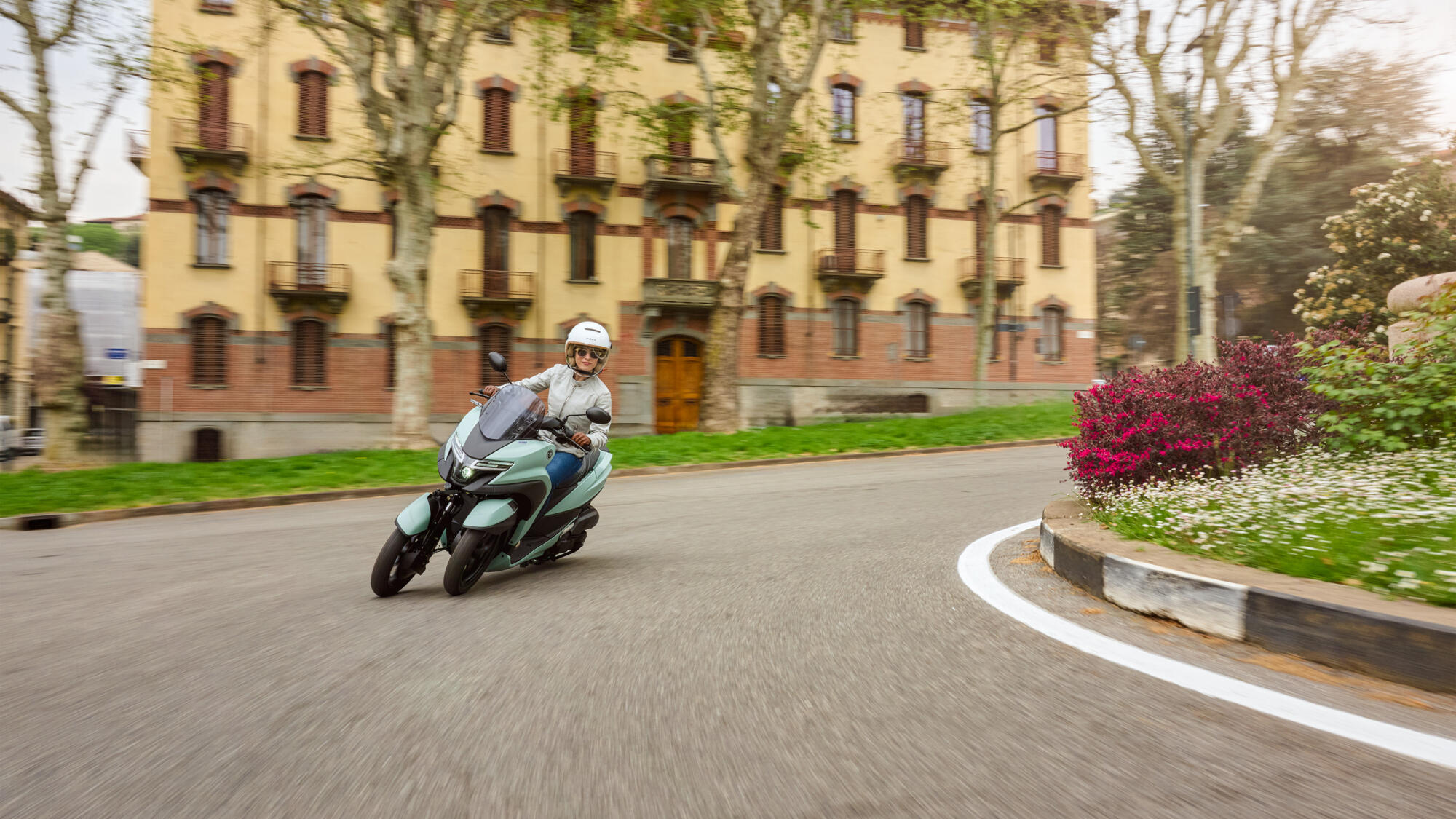 Riding this stylish 3-wheel scooter is so simple and intuitive. Just twist the throttle and you’ll feel the fully automatic 125cc EURO5+ engine accelerate smoothly and quietly. And Yamaha’s Leaning Multi Wheel chassis design provides confident turning on wet and uneven road surfaces.